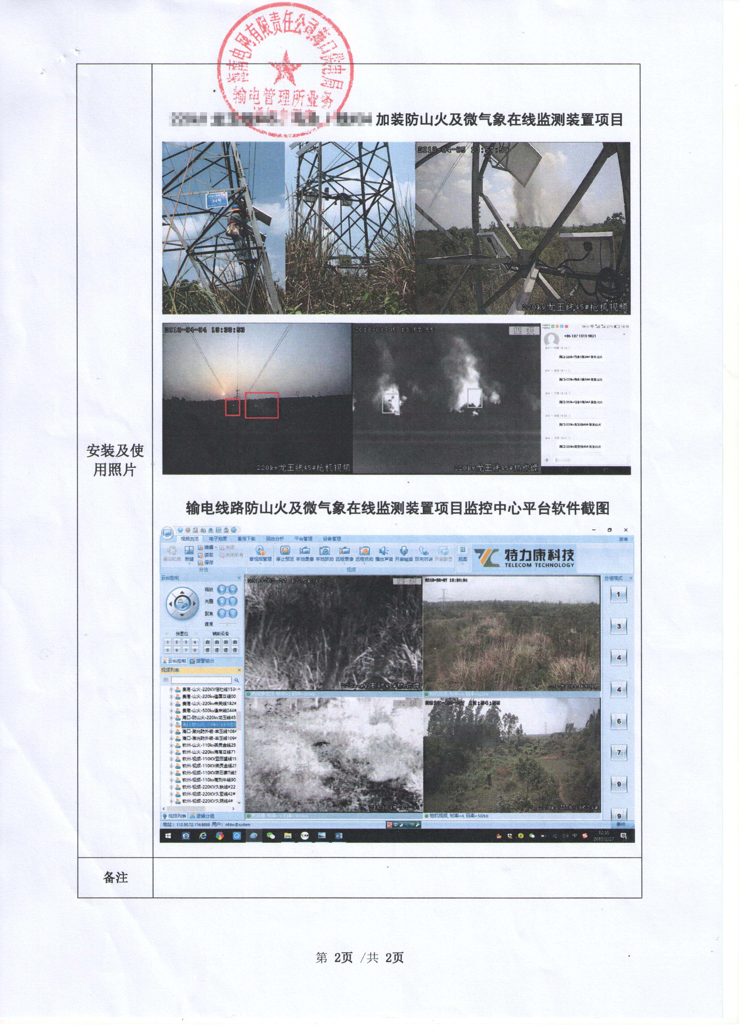 該設備符合規范要求,運行穩定,可起到時實監測輸電線路山火點以及氣象作用,設備可通過PC端及移動端APP進行時實觀看,使用方便,并且取得良好效果,保護線路安全運行,滿足線路監控需求。