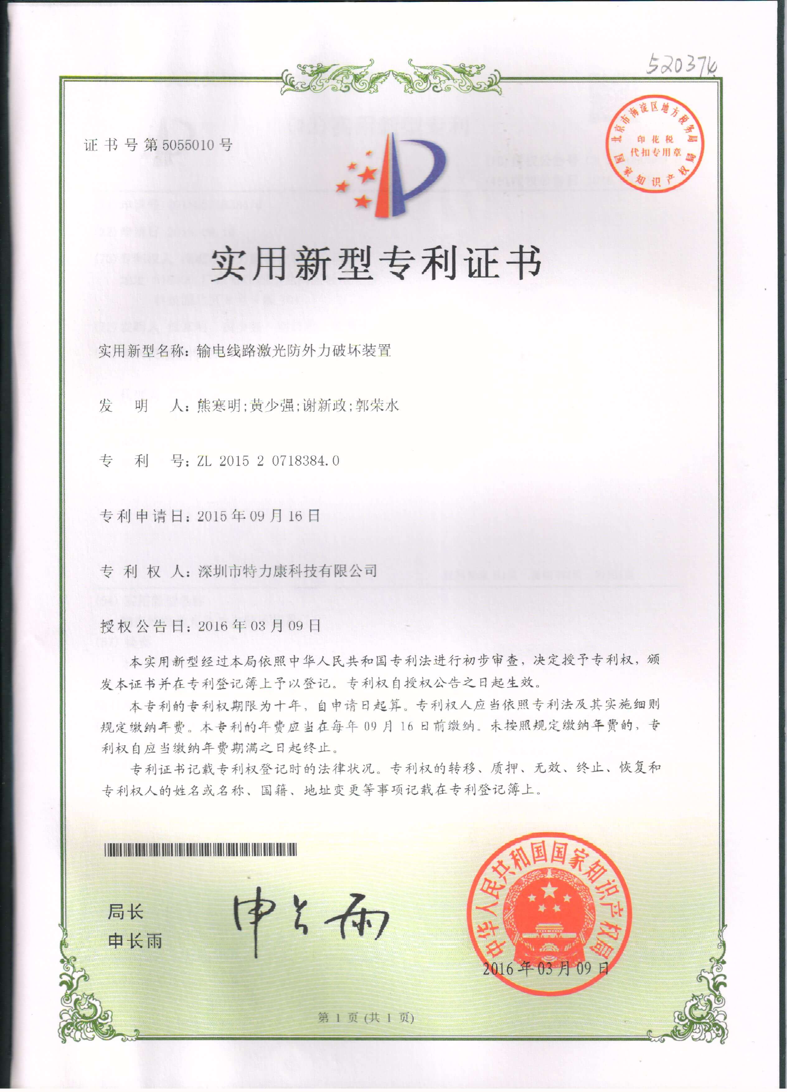 特力康中標國網黑龍江送變電工程公司的2024年度第18次物資類競爭性談判采購項目——慶陽驅鳥器物資框 特力康中標國網甘肅省電力公司省管產業單位2024年第五次物資競爭性談判授權采購項目 中標喜訊:深圳市特力康科技有限公司成功入圍許繼集團綜合能源公司輸電線路視頻在線監測裝置模塊集采項目 中標喜訊:特力康成功中標國網重慶市電力公司渝中一片區項目 特力康成功中標國網天津市電力公司2024年第二次?物?資招標項目 特力康中標國網安徽省電力有限公司蕪湖供電公司2024年3月非物質采購項目 四川電力用特力康架空輸電線路山火監測裝置,筑牢林區輸電 “防火墻”? 遼寧電力啟用特力康多視角監拍裝置,全維度守護輸電安全? 破解黃土高原沉降難題:山西電力用特力康北斗裝置守桿塔安全? 山東電力啟用特力康動態版智能激光驅鳥器,動態防控守護變電站安全? 湖南超高壓電力啟用特力康球機 AI 監測裝置,智能守護輸電通道安全? 廣西電力啟用特力康高壓電纜護層環流監控設備,筑牢電纜安全防線? 山東電力用上特力康綜合驅鳥器,多手段守護變電站安全? 陜西電力啟用特力康智能預警系統,多維監測守護輸電安全? 寧夏配電線路安裝了我司防外破電子化智能警示牌