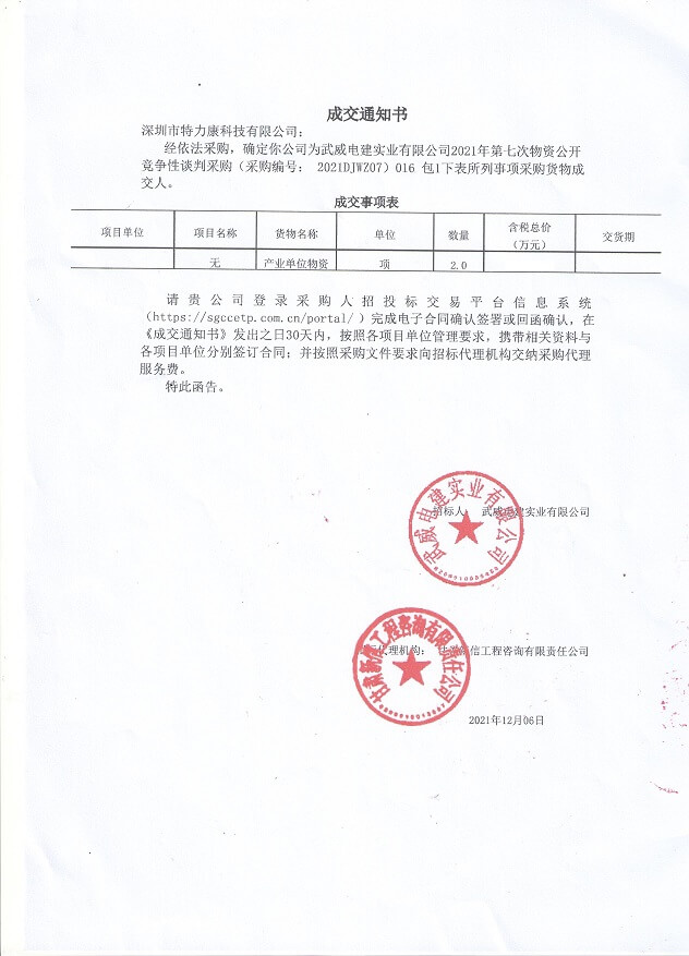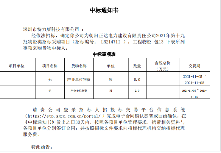 特力康中標國網黑龍江送變電工程公司的2024年度第18次物資類競爭性談判采購項目——慶陽驅鳥器物資框 特力康中標國網甘肅省電力公司省管產業單位2024年第五次物資競爭性談判授權采購項目 中標喜訊:深圳市特力康科技有限公司成功入圍許繼集團綜合能源公司輸電線路視頻在線監測裝置模塊集采項目 中標喜訊:特力康成功中標國網重慶市電力公司渝中一片區項目 特力康成功中標國網天津市電力公司2024年第二次?物?資招標項目 特力康中標國網安徽省電力有限公司蕪湖供電公司2024年3月非物質采購項目 四川電力用特力康架空輸電線路山火監測裝置,筑牢林區輸電 “防火墻”? 遼寧電力啟用特力康多視角監拍裝置,全維度守護輸電安全? 破解黃土高原沉降難題:山西電力用特力康北斗裝置守桿塔安全? 山東電力啟用特力康動態版智能激光驅鳥器,動態防控守護變電站安全? 湖南超高壓電力啟用特力康球機 AI 監測裝置,智能守護輸電通道安全? 廣西電力啟用特力康高壓電纜護層環流監控設備,筑牢電纜安全防線? 山東電力用上特力康綜合驅鳥器,多手段守護變電站安全? 陜西電力啟用特力康智能預警系統,多維監測守護輸電安全? 寧夏配電線路安裝了我司防外破電子化智能警示牌