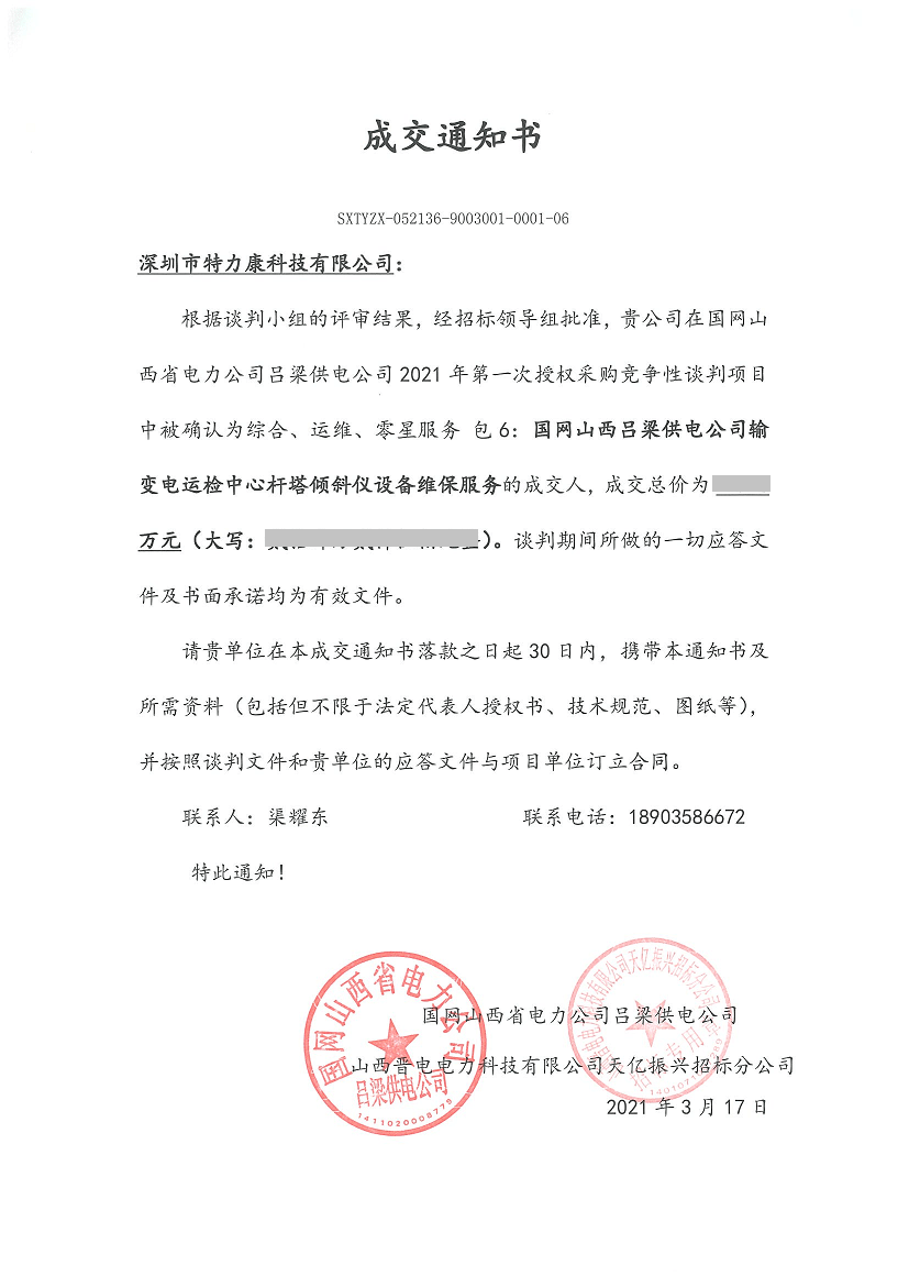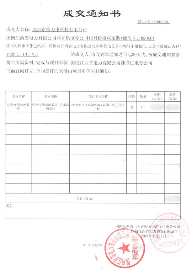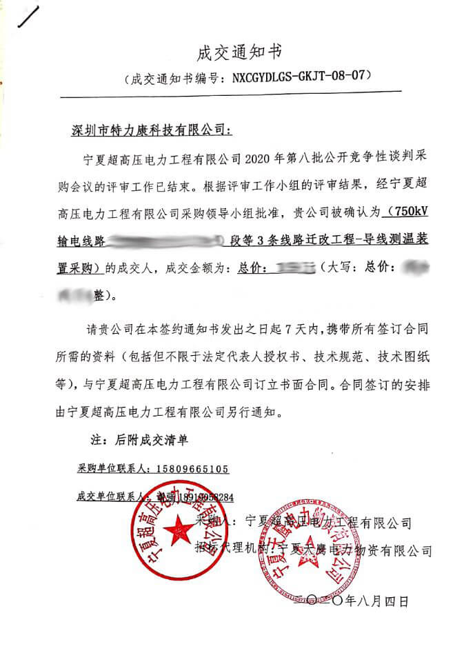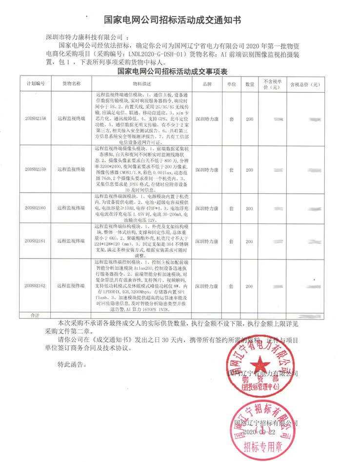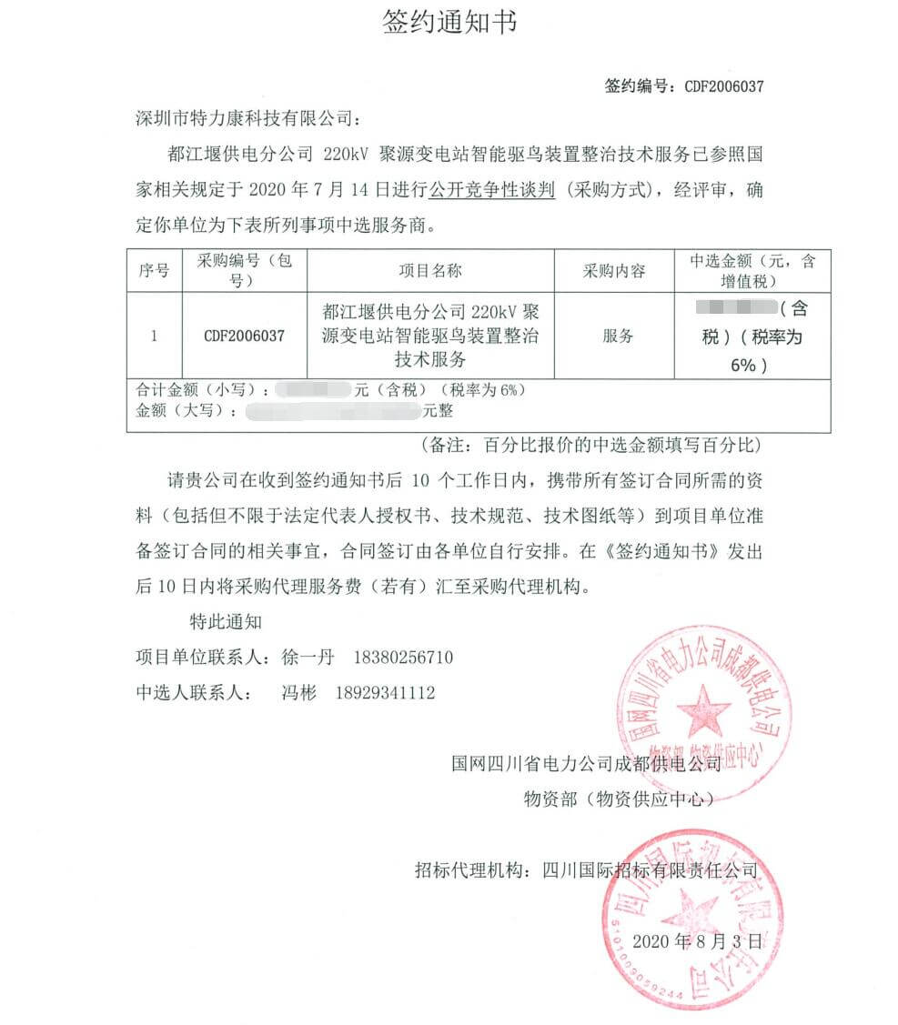 特力康中標國網黑龍江送變電工程公司的2024年度第18次物資類競爭性談判采購項目——慶陽驅鳥器物資框 特力康中標國網甘肅省電力公司省管產業單位2024年第五次物資競爭性談判授權采購項目 中標喜訊:深圳市特力康科技有限公司成功入圍許繼集團綜合能源公司輸電線路視頻在線監測裝置模塊集采項目 中標喜訊:特力康成功中標國網重慶市電力公司渝中一片區項目 特力康成功中標國網天津市電力公司2024年第二次?物?資招標項目 特力康中標國網安徽省電力有限公司蕪湖供電公司2024年3月非物質采購項目 四川電力用特力康架空輸電線路山火監測裝置,筑牢林區輸電 “防火墻”? 遼寧電力啟用特力康多視角監拍裝置,全維度守護輸電安全? 破解黃土高原沉降難題:山西電力用特力康北斗裝置守桿塔安全? 山東電力啟用特力康動態版智能激光驅鳥器,動態防控守護變電站安全? 湖南超高壓電力啟用特力康球機 AI 監測裝置,智能守護輸電通道安全? 廣西電力啟用特力康高壓電纜護層環流監控設備,筑牢電纜安全防線? 山東電力用上特力康綜合驅鳥器,多手段守護變電站安全? 陜西電力啟用特力康智能預警系統,多維監測守護輸電安全? 寧夏配電線路安裝了我司防外破電子化智能警示牌