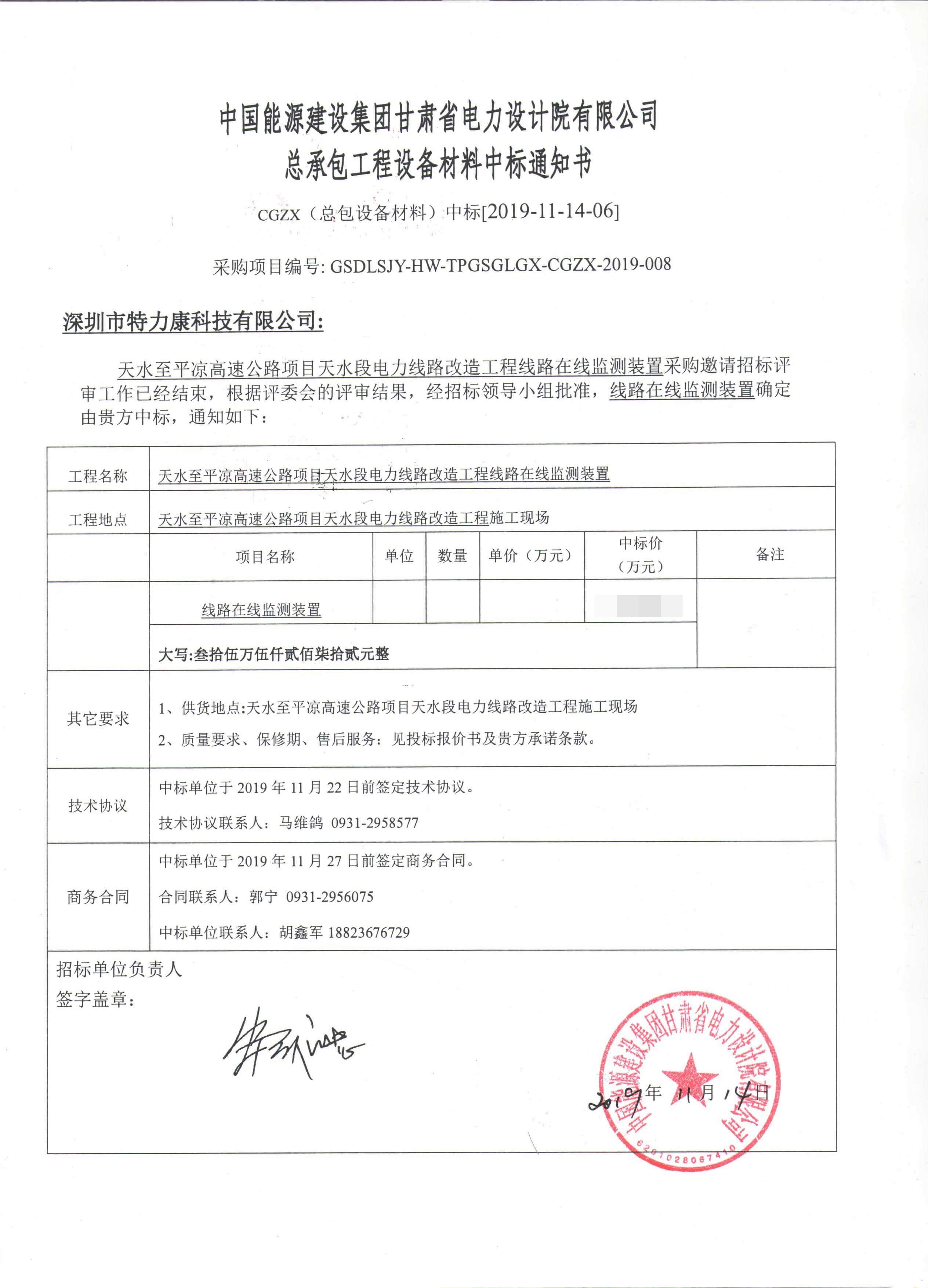 特力康中標國網黑龍江送變電工程公司的2024年度第18次物資類競爭性談判采購項目——慶陽驅鳥器物資框 特力康中標國網甘肅省電力公司省管產業單位2024年第五次物資競爭性談判授權采購項目 中標喜訊:深圳市特力康科技有限公司成功入圍許繼集團綜合能源公司輸電線路視頻在線監測裝置模塊集采項目 中標喜訊:特力康成功中標國網重慶市電力公司渝中一片區項目 特力康成功中標國網天津市電力公司2024年第二次?物?資招標項目 特力康中標國網安徽省電力有限公司蕪湖供電公司2024年3月非物質采購項目 四川電力用特力康架空輸電線路山火監測裝置,筑牢林區輸電 “防火墻”? 遼寧電力啟用特力康多視角監拍裝置,全維度守護輸電安全? 破解黃土高原沉降難題:山西電力用特力康北斗裝置守桿塔安全? 山東電力啟用特力康動態版智能激光驅鳥器,動態防控守護變電站安全? 湖南超高壓電力啟用特力康球機 AI 監測裝置,智能守護輸電通道安全? 廣西電力啟用特力康高壓電纜護層環流監控設備,筑牢電纜安全防線? 山東電力用上特力康綜合驅鳥器,多手段守護變電站安全? 陜西電力啟用特力康智能預警系統,多維監測守護輸電安全? 寧夏配電線路安裝了我司防外破電子化智能警示牌
