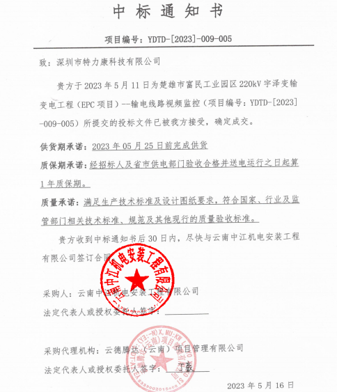 特力康中標(biāo)國網(wǎng)黑龍江送變電工程公司的2024年度第18次物資類競爭性談判采購項(xiàng)目——慶陽驅(qū)鳥器物資框 特力康中標(biāo)國網(wǎng)甘肅省電力公司省管產(chǎn)業(yè)單位2024年第五次物資競爭性談判授權(quán)采購項(xiàng)目 中標(biāo)喜訊:深圳市特力康科技有限公司成功入圍許繼集團(tuán)綜合能源公司輸電線路視頻在線監(jiān)測裝置模塊集采項(xiàng)目 中標(biāo)喜訊:特力康成功中標(biāo)國網(wǎng)重慶市電力公司渝中一片區(qū)項(xiàng)目 特力康成功中標(biāo)國網(wǎng)天津市電力公司2024年第二次?物?資招標(biāo)項(xiàng)目 特力康中標(biāo)國網(wǎng)安徽省電力有限公司蕪湖供電公司2024年3月非物質(zhì)采購項(xiàng)目 四川電力用特力康架空輸電線路山火監(jiān)測裝置,筑牢林區(qū)輸電 “防火墻”? 遼寧電力啟用特力康多視角監(jiān)拍裝置,全維度守護(hù)輸電安全? 破解黃土高原沉降難題:山西電力用特力康北斗裝置守桿塔安全? 山東電力啟用特力康動(dòng)態(tài)版智能激光驅(qū)鳥器,動(dòng)態(tài)防控守護(hù)變電站安全? 湖南超高壓電力啟用特力康球機(jī) AI 監(jiān)測裝置,智能守護(hù)輸電通道安全? 廣西電力啟用特力康高壓電纜護(hù)層環(huán)流監(jiān)控設(shè)備,筑牢電纜安全防線? 山東電力用上特力康綜合驅(qū)鳥器,多手段守護(hù)變電站安全? 陜西電力啟用特力康智能預(yù)警系統(tǒng),多維監(jiān)測守護(hù)輸電安全? 寧夏配電線路安裝了我司防外破電子化智能警示牌